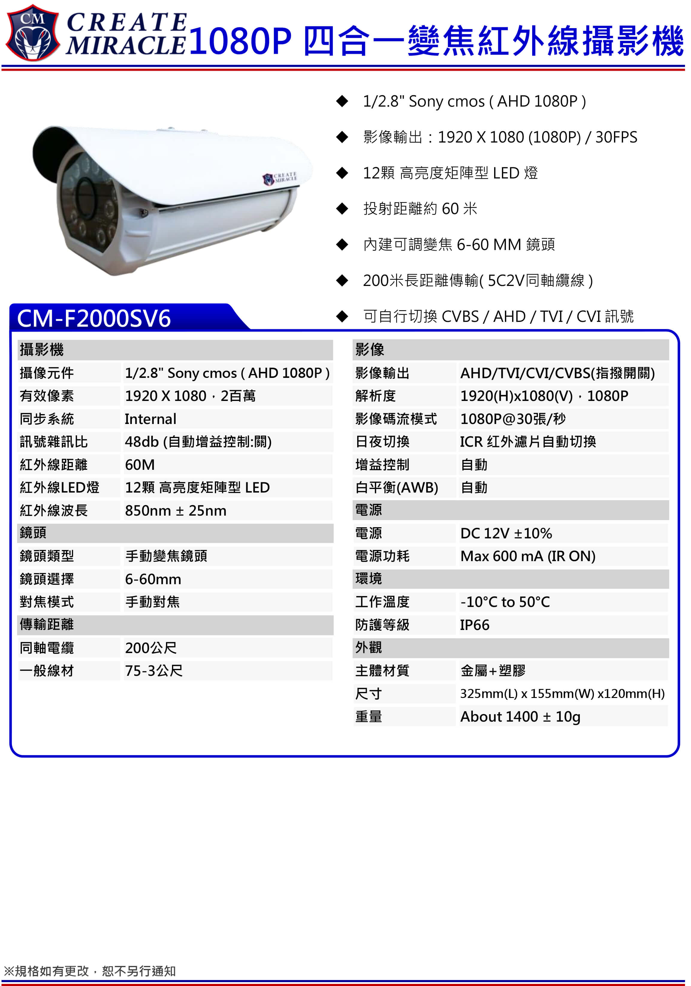 CM-F2000SV6 1080P 四合一變焦紅外線攝影機 | ||