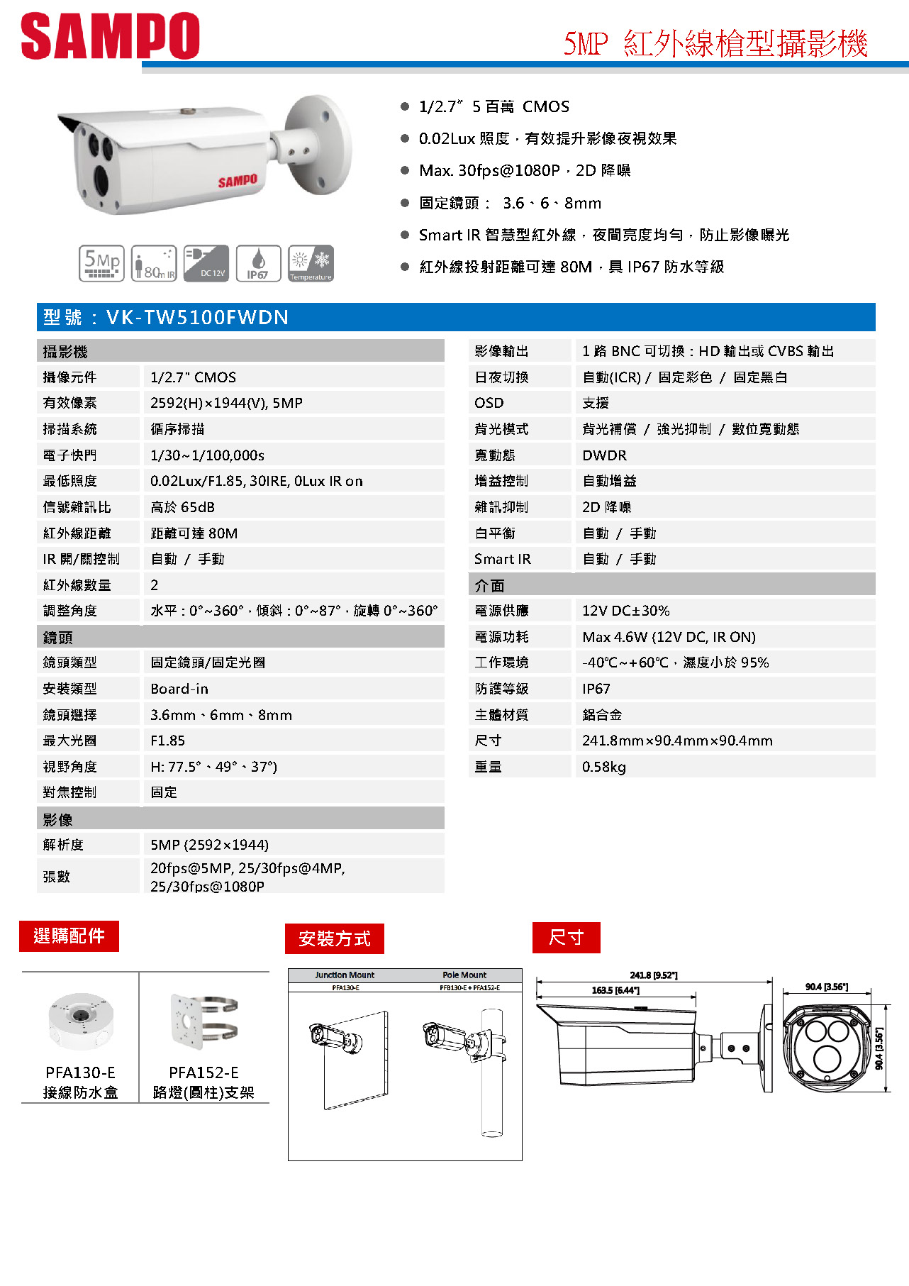 VK-TW5100FWDN 5MP 紅外線槍型攝影機 | ||