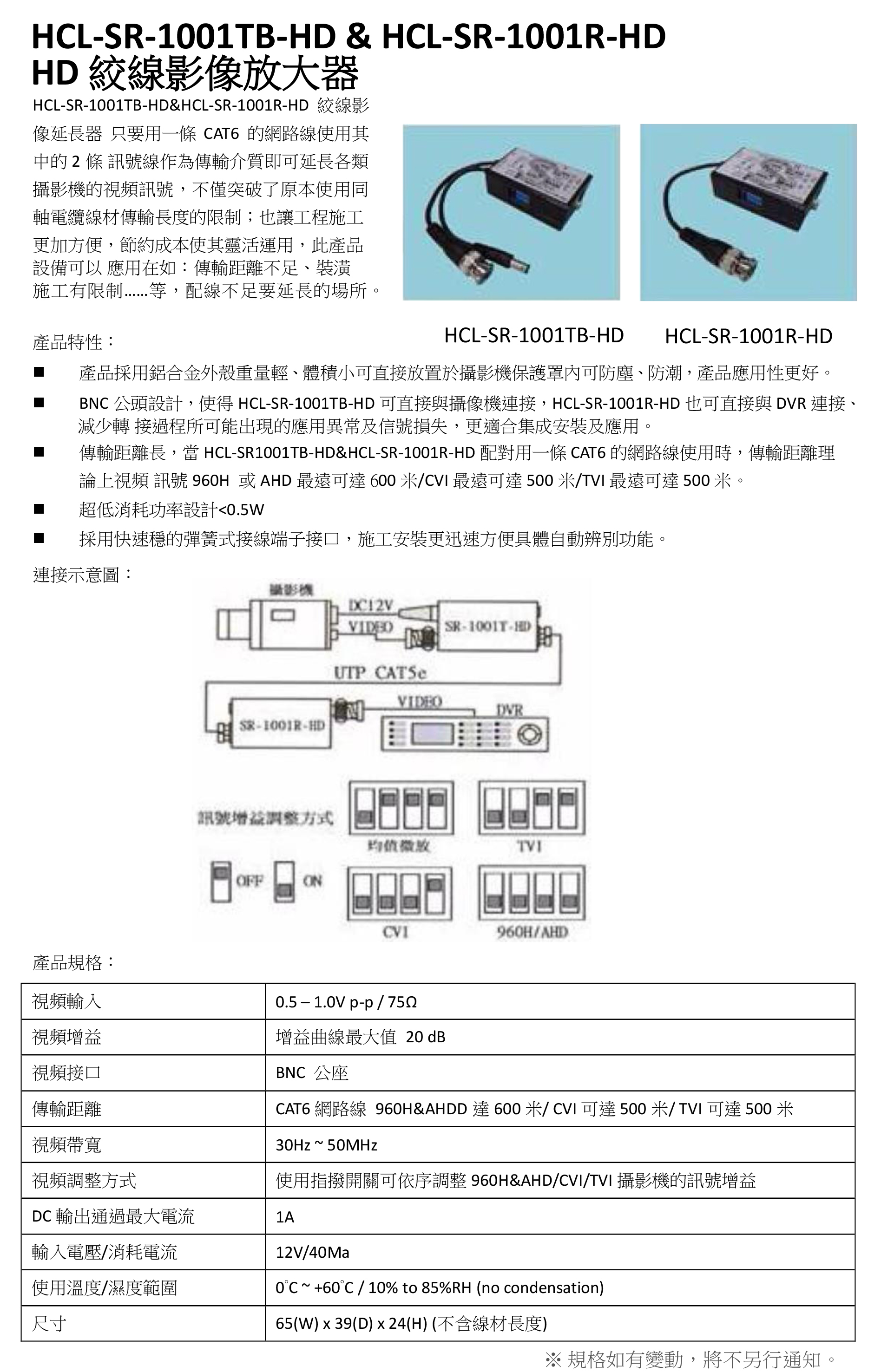 HCL-SR-1001R-HD.HCL-SR-1001TB-HD 絞線影像放大器 | ||