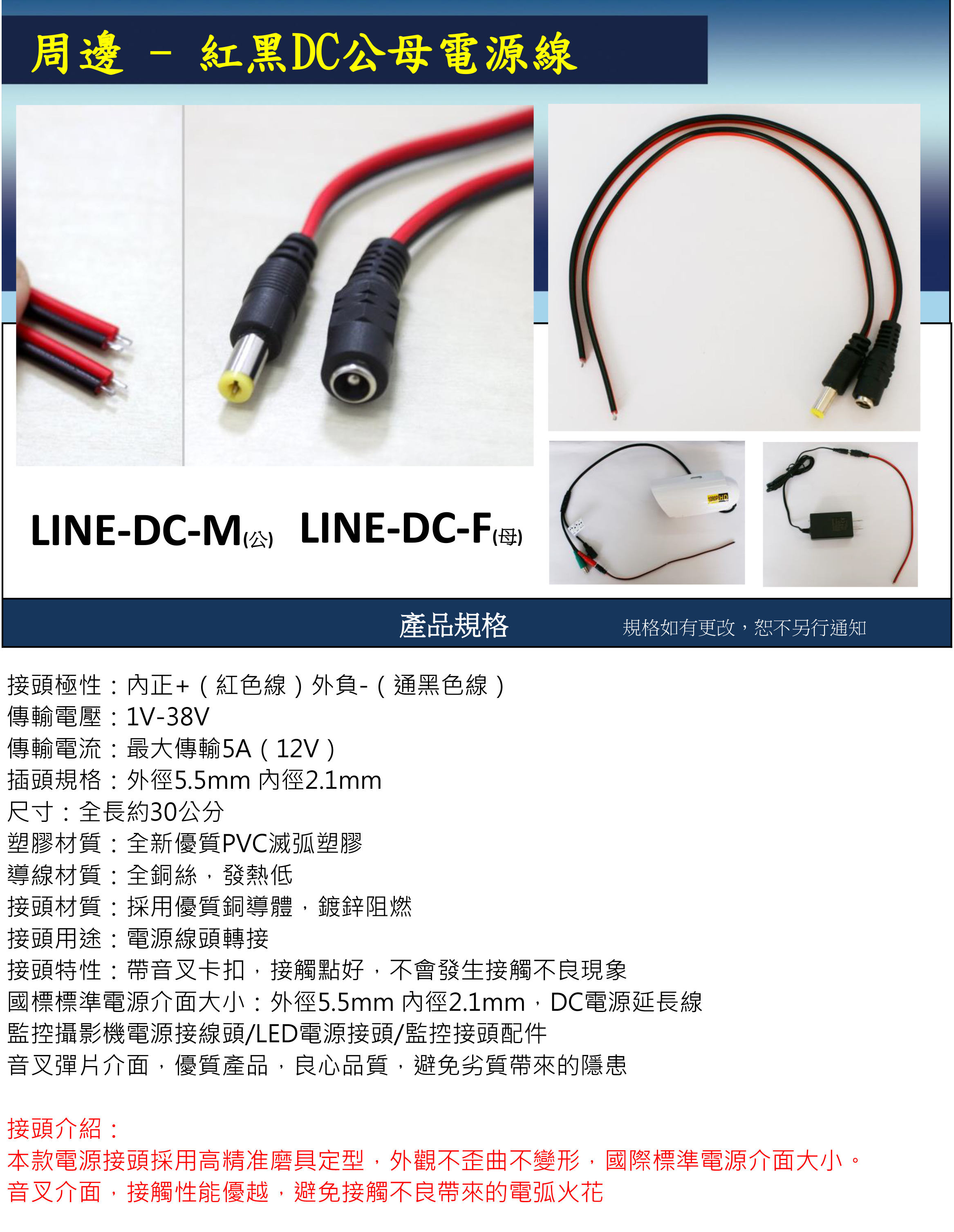 LINE-DC-F.LINE-DC-M 紅黑DC公母電源線 | ||
